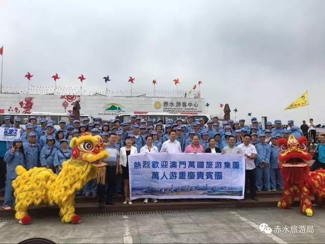 2017年6月9日,澳門萬(wàn)人游赤水包機(jī)團(tuán)首發(fā)儀式在赤水市游客接待中心隆重舉行。市人民政府副市長(zhǎng)王俊龍、旅游局黨組書記、局長(zhǎng)肖艷;旅發(fā)公司董事長(zhǎng)楊月平、旅發(fā)公司總經(jīng)理助理唐尚奎;澳門萬(wàn)國(guó)旅游集團(tuán)董事梁金成、澳門萬(wàn)國(guó)旅游集團(tuán)重慶辦事處主任王明亮、重慶鼎尚國(guó)際旅行社有限公司總經(jīng)理劉妍以及澳門游客共600余人參加本次首發(fā)儀式。