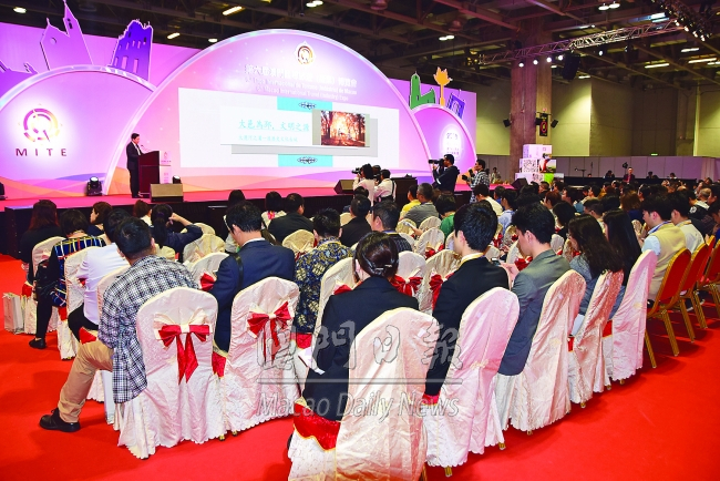 推介會昨上午十一時假威尼斯人金光會展中心D館主舞臺區(qū)舉行。中聯(lián)辦宣傳文化部部長萬速成,旅遊局長文綺華,文化局長穆欣欣,全國政協(xié)委員劉雅煌,社文司辦公室顧問林曉白等出席。