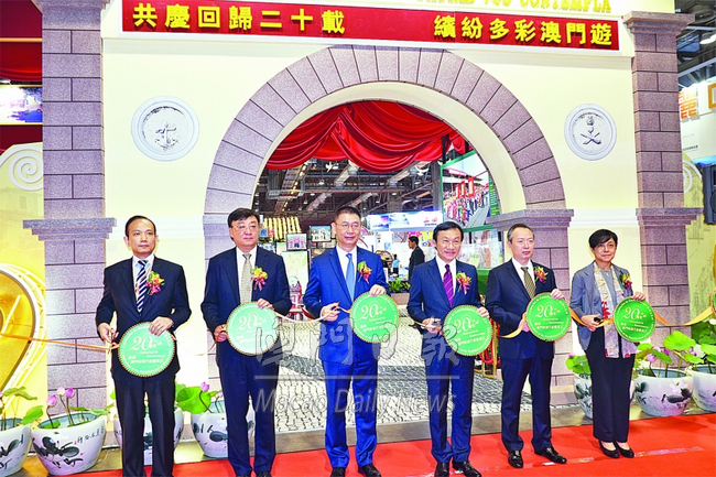 為慶祝澳門特區(qū)成立二十周年,旅遊局特意於旅博會(huì)設(shè)立《共慶回歸二十載,繽紛多彩澳門遊》特別展覽,以七個(gè)篇章,全方位及多角度展示澳門在“一國(guó)兩制”成功實(shí)踐下持續(xù)豐富的綜合旅遊資源和產(chǎn)品,以及全力構(gòu)建“世界旅遊休閒中心”的成果。同時(shí)舉辦抽獎(jiǎng)活動(dòng),向旅客宣傳澳門特區(qū)成立二十周年。
