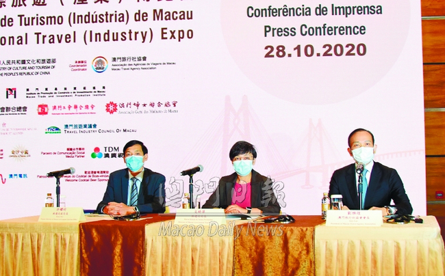 大會昨下午三時(shí)於澳門旅遊塔會展中心四樓舉行新聞發(fā)佈會。旅遊局長文綺華、副局長許耀明及澳門旅行社協(xié)會會長劉雅煌等出席。