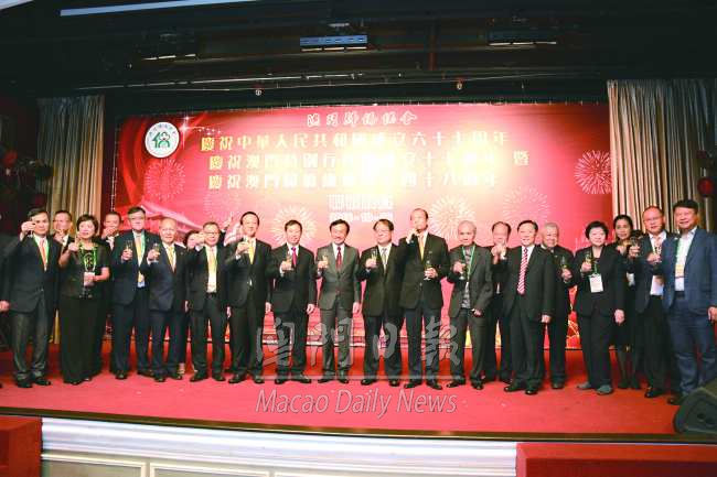 【本報消息】歸僑總會慶祝國慶六十七周年、特區(qū)成立十七周年暨該會成立四十八周年會慶聯歡宴會,昨晚七時半假萬豪軒酒家舉行。社文司司長譚俊榮、中聯辦副主任陳斯喜及外交公署副特派員潘雲東等到賀。