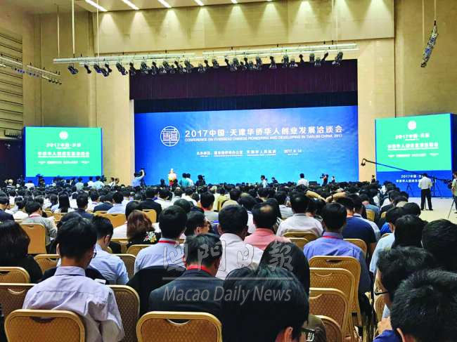 澳門特區(qū)政府代表團(tuán)昨參與“二○ 一七中國(guó) · 天津華僑華人創(chuàng)業(yè)發(fā)展洽談會(huì)暨世界僑商項(xiàng)目與商品博覽會(huì)”與在北京舉行的“第二屆世界華僑華人工商大會(huì)”是相關(guān)活動(dòng),同樣面向世界華僑華人。澳門貿(mào)促局於展會(huì)內(nèi)設(shè)置“澳門館”,主要推廣澳門最新之投資環(huán)境,並以“一中心、一平臺(tái)”為核心,凸顯中醫(yī)藥產(chǎn)業(yè)及澳門僑界推動(dòng)澳門經(jīng)濟(jì)適度多元發(fā)展,積極參與及助力國(guó)家“一帶一路”建設(shè)。