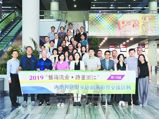 “藝海流金”內(nèi)地與港澳文化界交流活動今年在如詩如畫的杭州掀開序幕,澳門四十三位文化和旅遊業(yè)界的代表參與,分別以文博組、藝術(shù)組、旅遊組參觀和交流。參觀良渚博物館、良渚文化藝術(shù)中心、中國絲綢博物館、浙江音樂學(xué)院、中國美術(shù)學(xué)院、杭州手工藝活態(tài)館等景點(diǎn),並舉行不同主題的浙港澳文化沙龍。