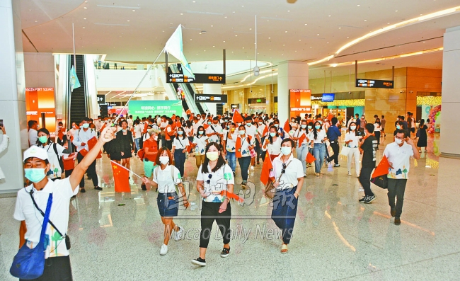 “心出發(fā) · 澳遊橫琴”首發(fā)團(tuán)一行近百人昨日下午三時在橫琴新口岸啟用後率先通關(guān)踏入橫琴,以半天橫琴遊形式拉開琴澳聯(lián)動協(xié)同發(fā)展、打造琴澳旅遊品牌的序幕。
