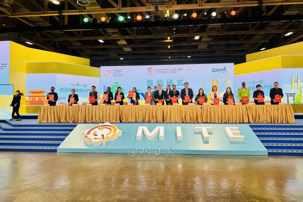 【澳門日報(bào)消息】第十二屆澳門國際旅遊(產(chǎn)業(yè))博覽會今日下午五時(shí)於旅博會主舞臺舉行簽約儀式,在澳門旅遊局局長文綺華,澳門中聯(lián)辦經(jīng)濟(jì)部副部長楊皓,澳門旅行社協(xié)會會長劉雅煌見證下,逾80個(gè)文旅相關(guān)機(jī)構(gòu)和社團(tuán)參與,共分為7個(gè)組別,簽訂逾30份涵蓋旅遊、大健康、航空、研學(xué)、婚慶等合作項(xiàng)目,其中17個(gè)“一帶一路”國家現(xiàn)場展商及買家同共簽署《旅博會“一帶一路”旅遊發(fā)展聯(lián)盟澳門倡議》。