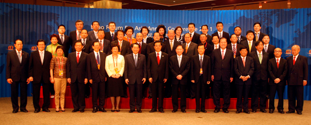 國(guó)家主席胡錦濤在“博鰲亞洲論壇2011年年會(huì)”活動(dòng)上,親切會(huì)見了出席“華商圓桌會(huì)議”的本澳萬國(guó)控股集團(tuán)主席劉雅煌,以及泰國(guó)正大集團(tuán)董事長(zhǎng)謝國(guó)民、印尼力保集團(tuán)董事局主席李文正、香港世茂集團(tuán)董事局主席許榮茂、香港亞洲金融集團(tuán)主席陳有慶、印尼金光集團(tuán)董事長(zhǎng)黃志源、福耀玻璃工業(yè)集團(tuán)股份有限公司董事長(zhǎng)曹德旺、新加坡金鷹國(guó)際集團(tuán)董事局主席陳江和、東莞玖龍紙業(yè)有限公司董事長(zhǎng)張茵等知名華商領(lǐng)袖。