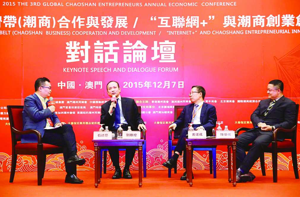 昨日下午兩點半假威尼斯人舉行的天下潮商經(jīng)濟年會對話論壇二:“絲綢之路經(jīng)濟帶(潮商)合作與發(fā)展”上,劉雅煌表示,全球有非常多的潮商以外的聯(lián)動,跟當?shù)氐恼?、各個族群、各個階層都有密切關(guān)係,發(fā)揮三千萬潮汕外延作用。